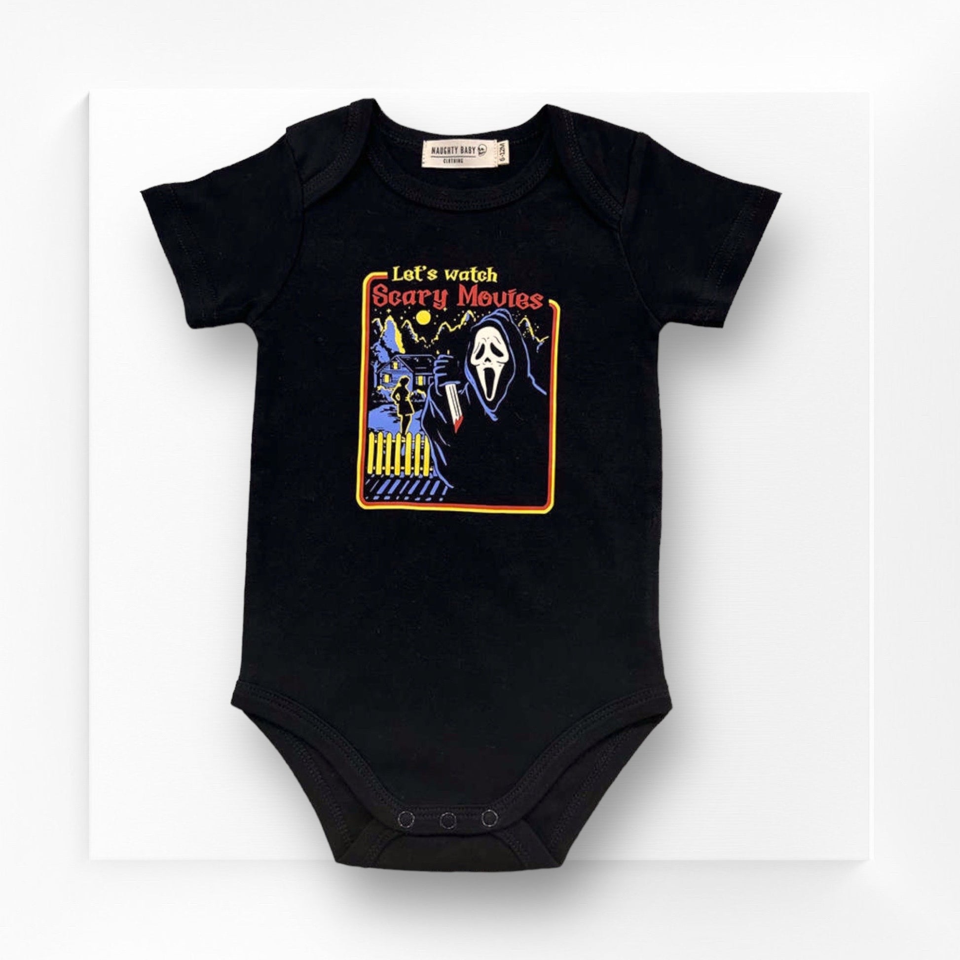 Introducing our unique and captivating Scream Baby Onesie - a perfect blend of comfort, style, and nostalgia! Inspired by the iconic Scream Movie, this onesie brings a touch of classic suspense to your little one's wardrobe.