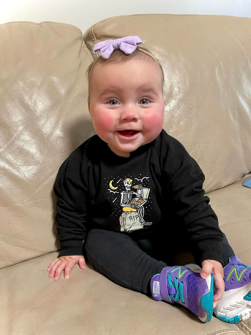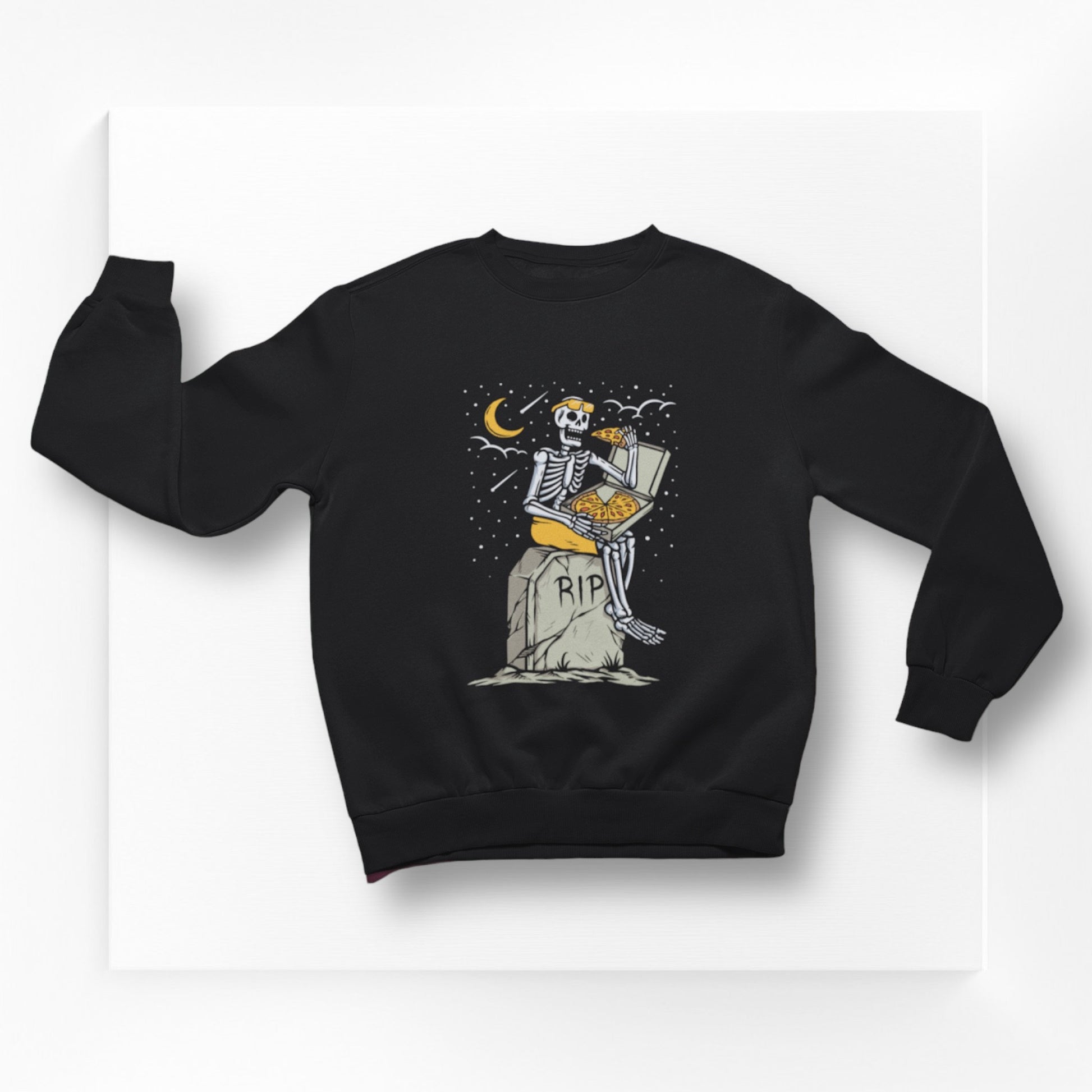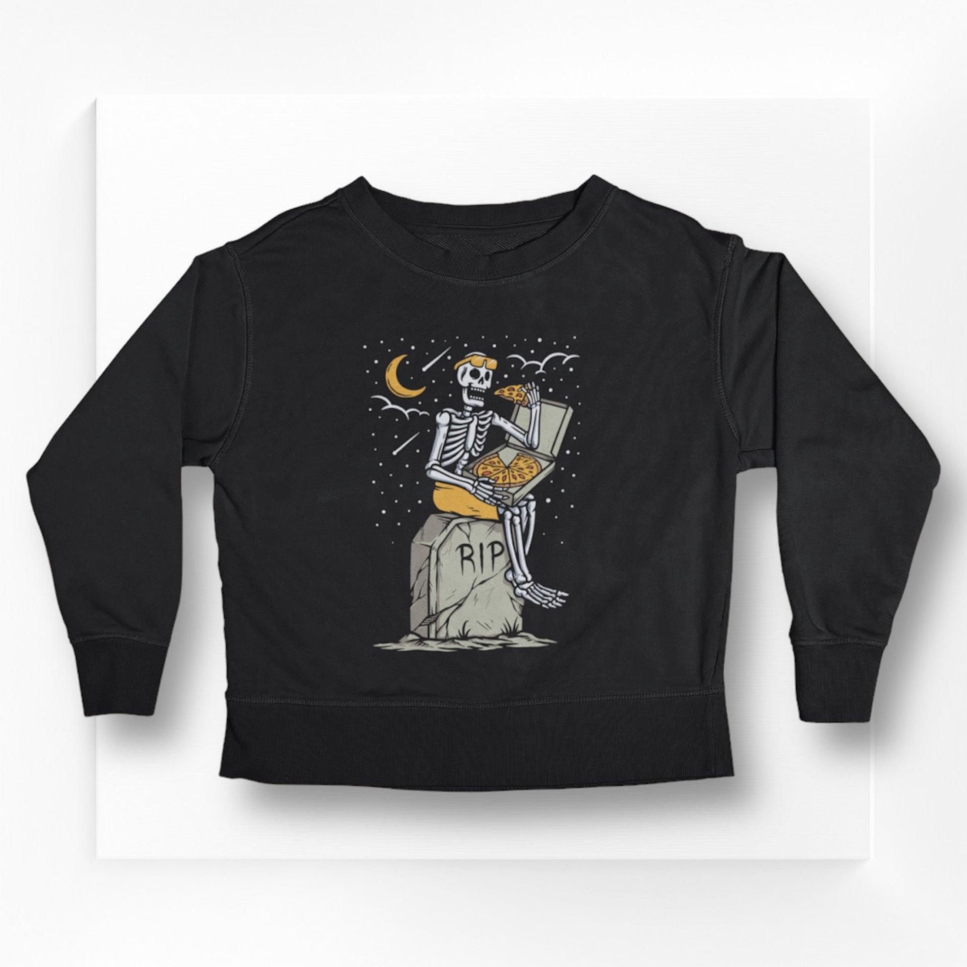 Why won't skeletons eat spicy foods? They don't have the stomach for it! This French Terry baby Sweatshirt is so soft and cozy and perfect for lounging or story time.